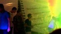 В луже расплескался блеск ночной,